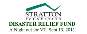 I just received a last minute notice about this incredibly important fundraiser happening tonight. In the aftermath of Irene, Vermont continues to rebuild what is left of their communities. Please see below for information, and head to Sidebar at 7pm tonight to make your contribution, 100% of which will go directly toward local aid via the Disaster Relief Fund set up by The Stratton Foundation.